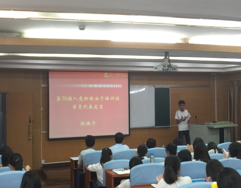 初秋的微风和煦轻柔,初秋的蓝天白云飘逸,告别了骄阳似火的夏日,彩民之家 迎来了东华大学第七十期入党积极分子培训班开班仪式和第一讲党课。 2016年9月6日星期二下午一点半,第七十期积极分子培训班开班仪式于旭日楼211隆重举行,本期学员包含了彩民之家 14、15级各支部共76名学员。当日,彩民之家 党总支书记林文伟老师,党总支副书记叶晓燕老师,学院党建模块负责老师屈喆老师,党校模块负责老师徐志德老师以及各支部书记、副书记和主要成员郝明洋、吴娅琳、王健华、沈嘉斌、吴怡慧、徐迎迎老师等出席开班仪式。 庄重的开班仪式在全体学员们齐唱的《国际歌》声中开序幕。首先,主持人徐志德介绍了本期党校的概况和学员守则。随后,来自第六十九期积极分子培训班优秀学员代表肖杰杰分享了自己上党课的收获,并号召学员们不能只追求在形式上入党,更要在思想上入党。其后,叶老师代表学院党总支宣布了本期党校学员名单,并详细介绍了为落实“两学一做”,彩民之家 将由各专职辅导员、兼职辅导员直接担任各学生党支部书记和发展联系人,以提高党员培养的质量,加强党员培养过程的监督和考察。 随后,本期培训班学员代表孙福宁发言,他首先让大家把掌声分别送给自己和学院,这是对学员自身的肯定,也是对学院的感激。此外,他结合了自身经历,激励大家不辜负他人期望,在未来的路上继续进步,争取早日加入中国共产党这个优秀的组织中。