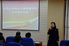 徐寅峰院长在就职讲话中做了表态发言,他说,因缘分来到了东华大学,感谢校领导和全体同事的信任与支持,今后在校党委的领导下,必将带领我院全体师生,依托学校优势并和兄弟院系精诚合作,团结奋进,取得更大的进步。