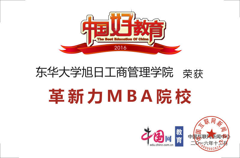 | 我院MBA荣获“2016年度革新力MBA院校”称号 |