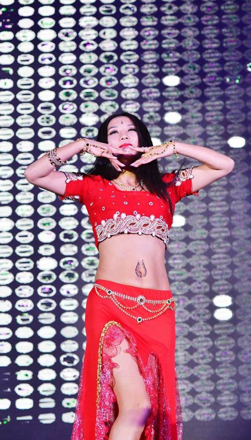 肚皮舞,这种神秘性感又充满诱惑的舞蹈,近些年也逐渐获得了国人的青睐。来自东华大学的付健同学穿着阿拉伯的传统服饰,登上了舞台,向大家展示肚皮舞的精妙。只见她身形百转,节奏变换,时而妩媚,时而性感,时而冷酷,时而挑逗。令人目不暇接的腰部动作,配合不断变化的手臂,将肚皮舞感性,奔放的特点展示在观众面前。曼妙的身段,窈窕的身姿,富有律动的摇摆,诠释了女性的阴柔之美。