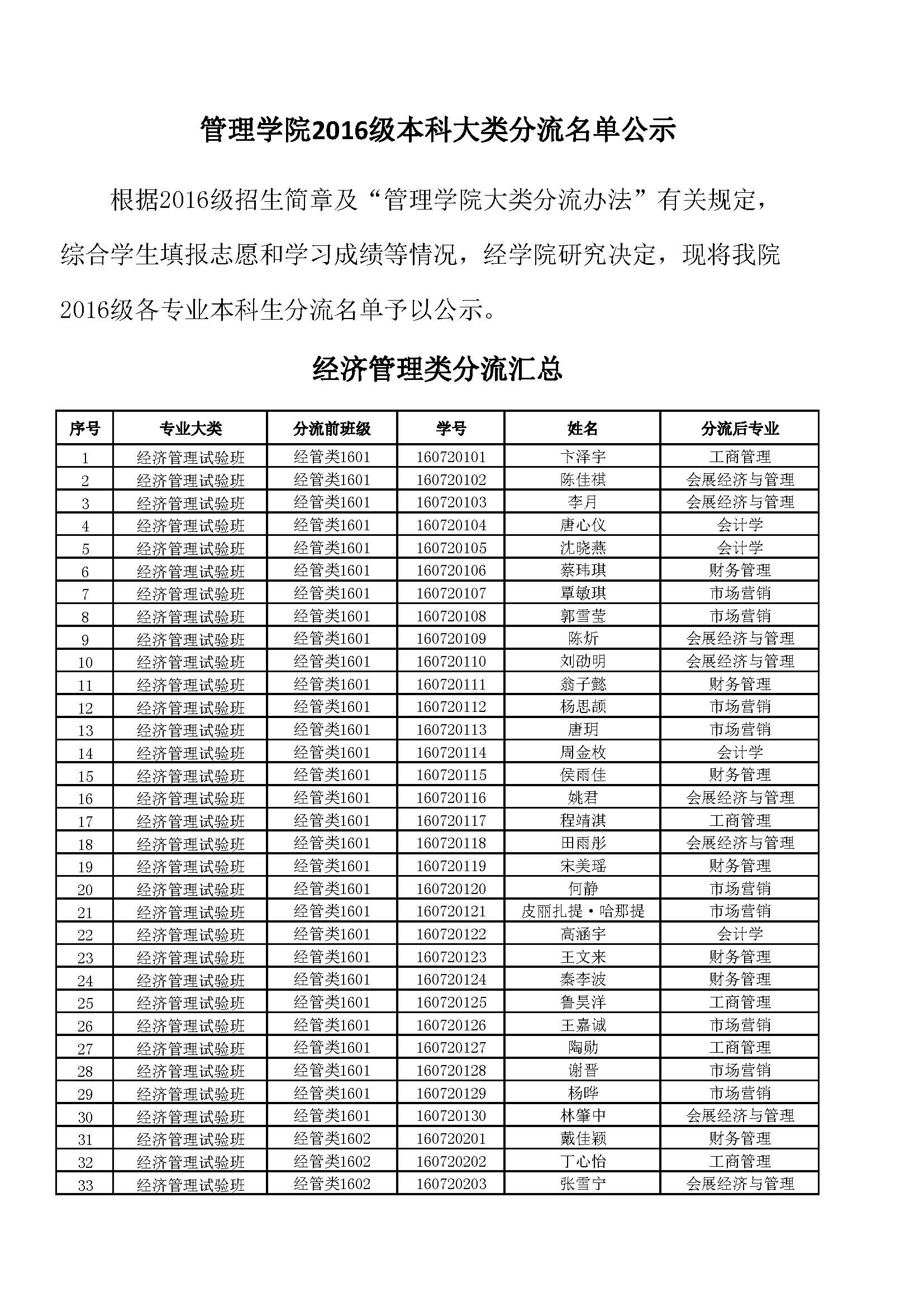 彩民之家 16级分流公示