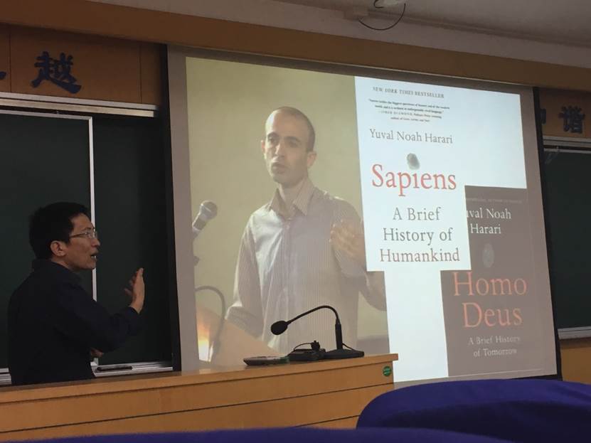 王教授首先为大家简要介绍了赫拉利的人生阅历,随后从吉尔伽美什计划作为切入点,提出了人生智慧的核心——做好自己该做的事情。讲座过程中,王教授将自己的研究领域与赫拉利进行结合与比较,同时将历史与人物相结合,为大家详细讲解了希伯来传统与赫拉利的《人类简史》和《未来简史》。 王教授幽默风趣的演讲方式使台下同学听得津津有味,同时又发人深思,耐人寻味。在问答交流环节,广大师生踊跃提问,学院林文伟书记在当中指出了大学生学习历史的重要性。最后,在徐院长的总结和同学们热烈的掌声中,本次讲座圆满结束。