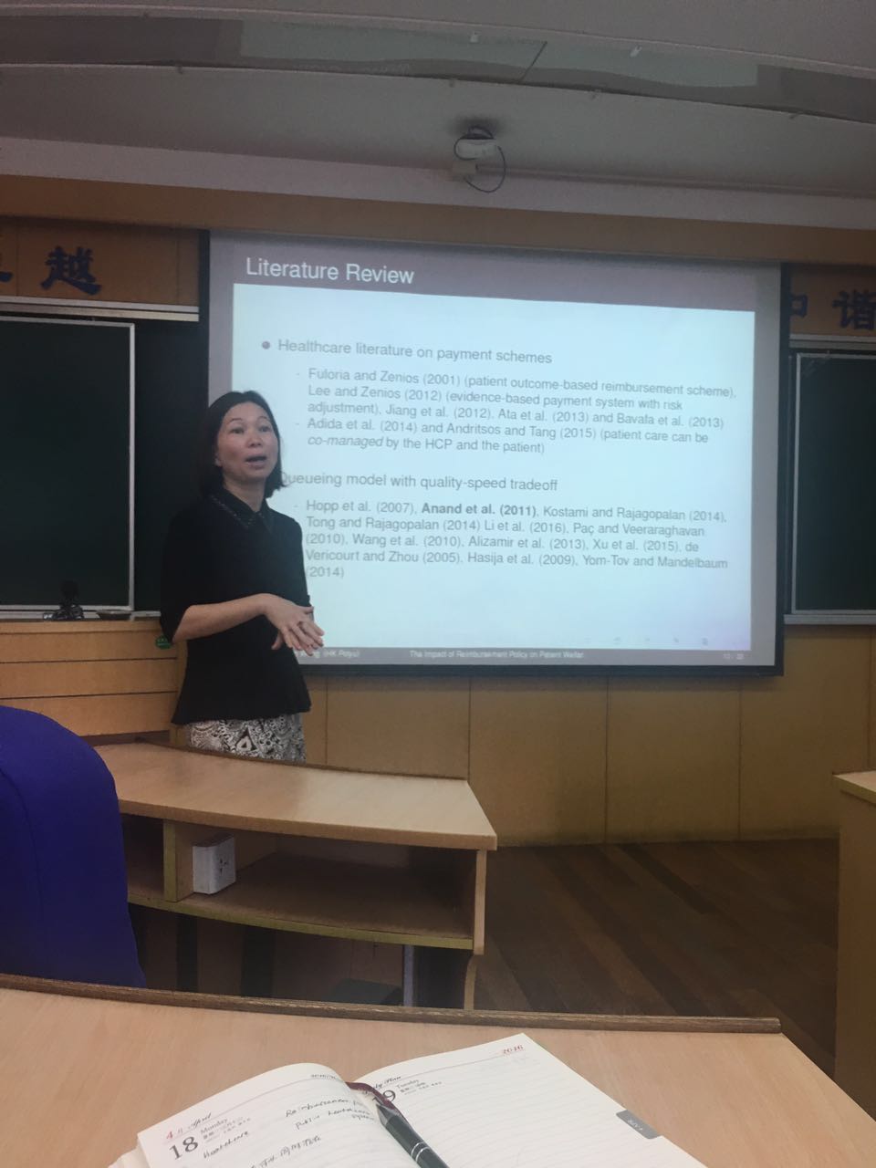的师生们做了一场题为“The Impact of Reimbursement Policy on Social Welfare, Revisit Rate & Waiting Time in a Public Health”的讲座,虽然已临近期末,但如此与生活紧密相关的主题仍吸引了许多师生到场聆听。