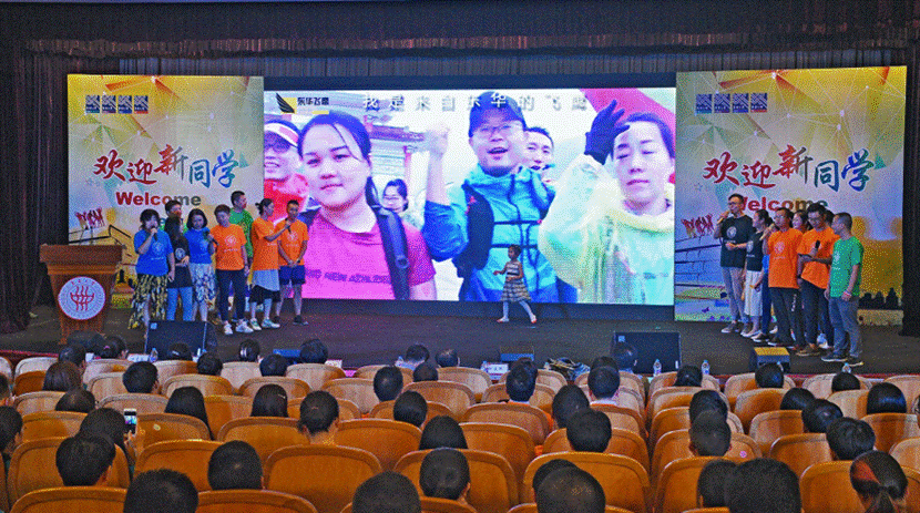(刘长奎主任主持开学典礼) 随后,副校长刘春红致辞。她作为东华大学MBA教育的主要创始人,为MBA教育开展奠定了坚实基础,在东华MBA创立20周年的特别日子,代表学校欢迎全体新生入学。刘校长介绍了东华大学的建校历史、教育理念和科研成就,回顾了包括MBA在内的各个专业学位项目的发展历程。她借用乔布斯的“stay hungry,stay foolish”鼓励同学满怀热情,希望同学们在东华实现三大目标:专业知识的学习、思维模式的转变、人际网络的建立。“做好规划、管好时间、练好身体”,才能最终“有所学、有所悟、有所得”,成为心系民族社会福祉的优秀管理者,让人生和事业的道路越走越远,让母校引以为荣。 最后,随着Beyond乐队“光辉岁月”的旋律,新生合唱团演唱了由MBA同学自己填词的“东华飞鹰”之歌。在激昂奋进的音乐中,开学典礼圆满结束。