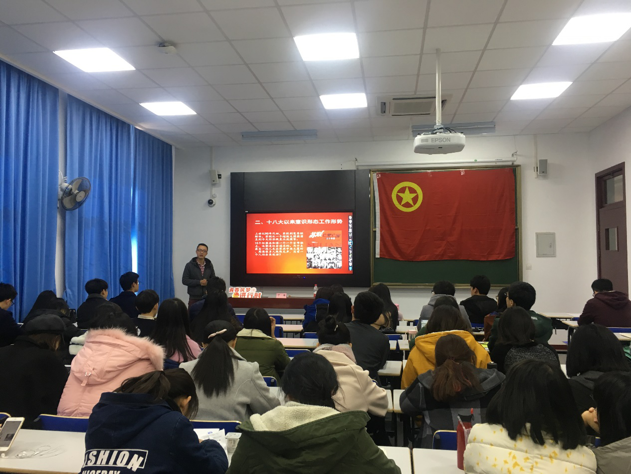 此次讲座中,丁伟老师以“什么是意识形态”、“党的十八大以来意识形态工作形势”、“意识形态与当代青年”三个板块,层层推进,解读当代青年如何深入学习意识形态。丁老师以马克思对于意识形态的解释开篇,以苏联解体的例子引入,着重介绍党的十八大以来意识形态工作形势上的问题以及对于意识形态冲击的四个不可避免。并谈到一个国家的意识形态工作必须和国情、党情、社情相符。同时,丁伟老师将意识形态与当代青年相联系,总结出在意识形态领域中不敢说、不会说、不愿说的问题,并有针对性地提出建议:一是理论必须回应热点话题,二是感动自己才能感动别人,三是加强理论学习。