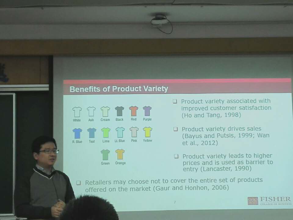 12月28日上午十点,美国俄亥俄州立大学Dr.Xiang Wan为彩民之家 全体师生做了一场题为“The Role of Retail Competition in Product Variety Decisions: An Empirical Analysis of Consumer Goods”的学术报告,报告会在旭日楼306教室举行,由徐琪副院长主持。