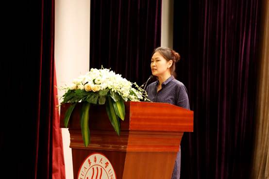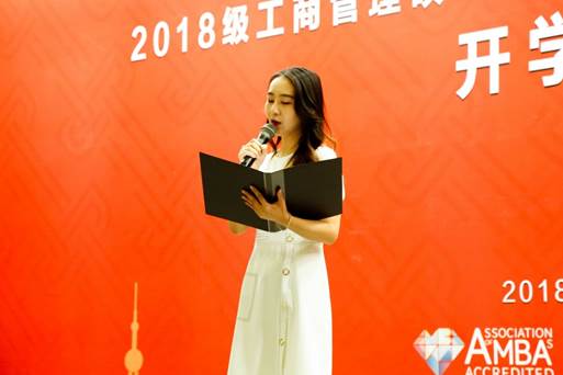 院长助理刘长奎副教授主持开学典礼 开学典礼仪式正式启动前,东华大学2016级MPAcc校友丁蕊以演唱“借古诗迎新”的新颖形式为迎新营造了一个别开生面的“开场白”,随后,开学典礼在庄严的国歌声中正式拉开了帷幕。