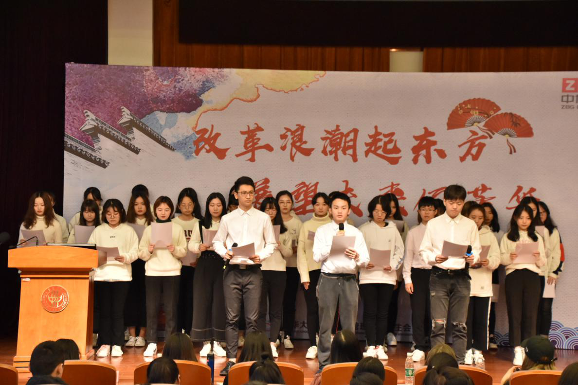 “伟大的中国共产党,带领着十三亿中华儿女,开辟着民族复兴的航线!”金融1703以一首《赞赞新时代》为改革开放所取得的丰硕成果点赞。半个世纪的搏击,渊远流长;时光的琴弦,弹唱着今日辉煌的旋律。新时代下的他们,为中国点赞,为青春点赞! 诗歌朗诵大赛提供了一个平台,增强各班级的凝聚力并激发其创造力,同时丰富广大同学的校园生活,全面提高同学们的综合素质。通过本次诗歌朗诵比赛,各班级采用自己的方式阐释青春,表达对祖国、学校和生活的热爱。同时,活动结合了纪念改革开放四十周年的重要精神,并将其融入诗朗诵比赛之中,使得同学们重温了历史,不忘初心,砥砺前行。 撰稿人:陈潇越 |