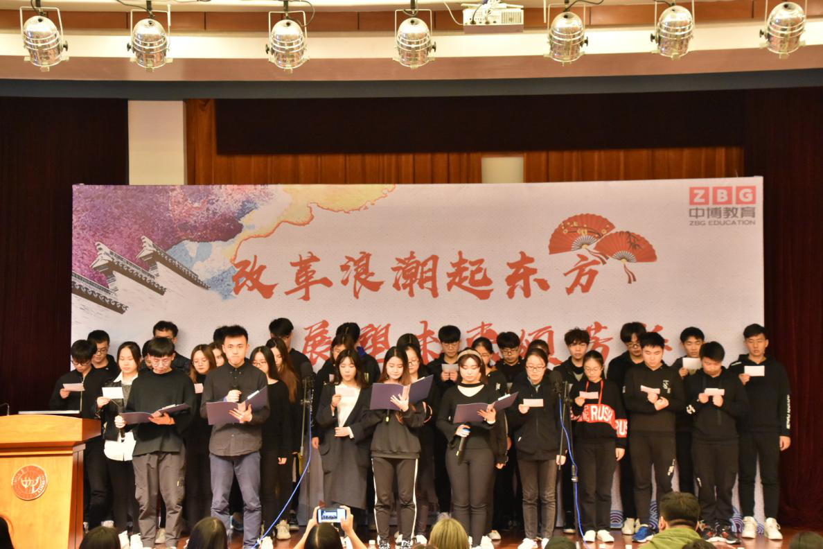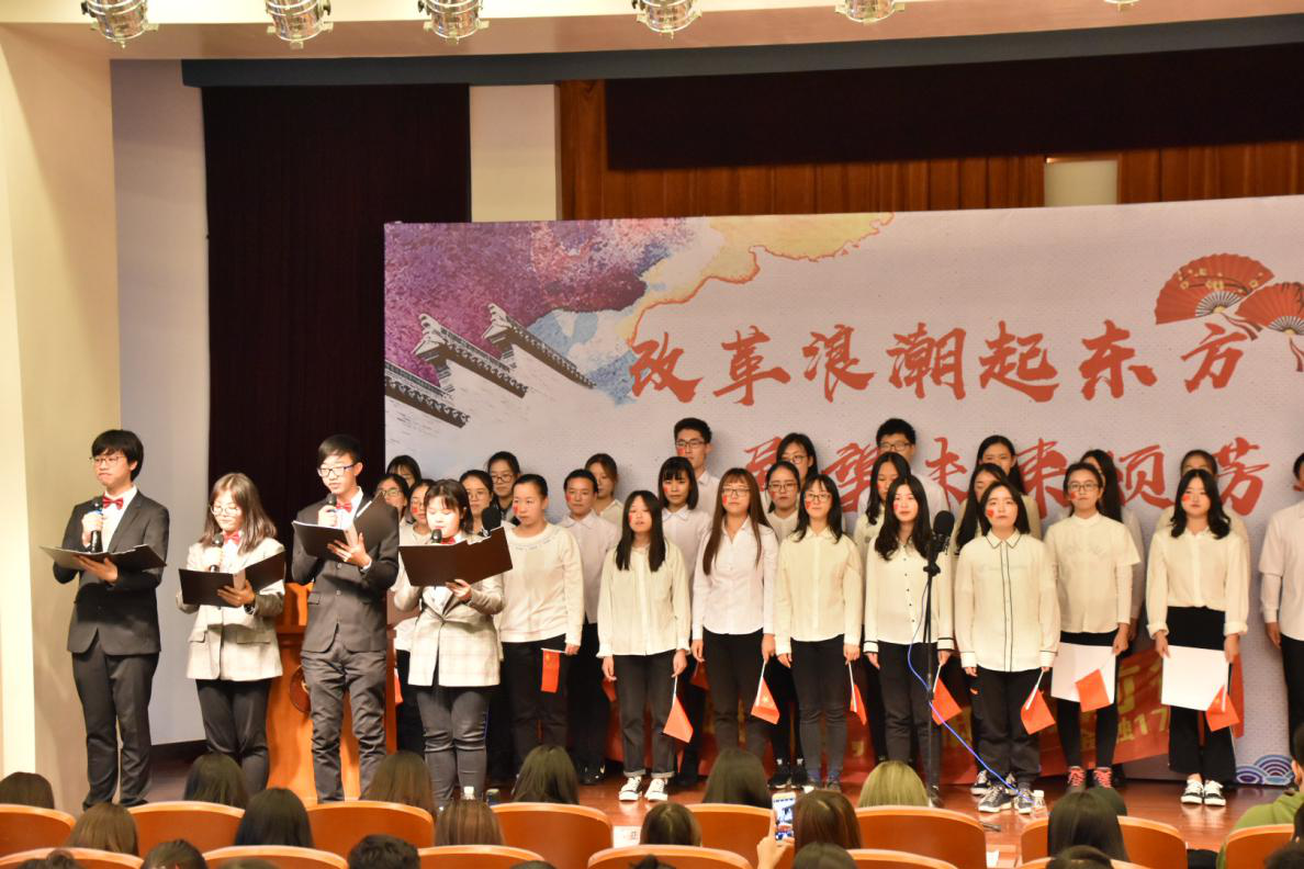 “在这片神奇的土地上,又一次萌发了腾飞的希望,历史的巨笔将描绘出新世纪更加灿烂的辉煌!” 国贸1701带来的《华夏崛起的希望》道出了他们对改革开放的称赞。少年智则国治,少年富则国富,少年强则国强。每一位中华少年,都是神州大地上冉冉升起的新星,也是构成祖国未来的希望。1978年,中国共产党用改革开放的伟大宣示把中国带入一个崭新的时代。
