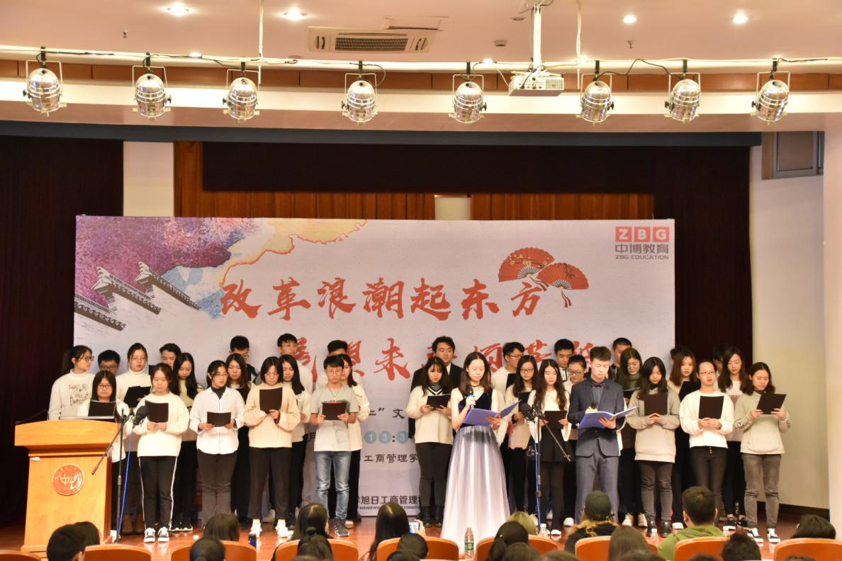 “我们在东华,传递未来的希望,助力宏图伟业,与日俱长!”会经1701带来的《青春梦与祖国同行,东华心铸华夏辉煌》则表明在改革开放四十年过程中,面向世界,拥抱未来。吾辈一代年二十,崇德博学,砺志尚实。一期一会,经彩青春!道出了东华大学的学子们对祖国未来发展殷切的期盼。