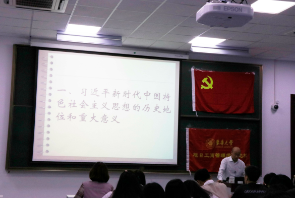 此次党课贺善侃教授用三个主题讲述了他的研究和理解,分别是习近平新时代中国特色社会主义思想的历史地位和重大意义、习近平新时代中国特色社会主义思想的核心要义和创新点以及认真学好习近平新时代中国特色社会主义思想。