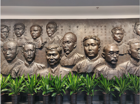 (中共一大会址入口处雕像) 展馆中,中国共产党创建历史陈列主要分为三部分,第一部分:前赴后继救亡图存,第二部分:风云际会相约建党;第三部分:群英汇聚开天辟地。主要介绍了中国党成立的历史背景、中国共产党早期组织的成立及其活动和中国共产党第一次全国代表大会召开的全过程。今年恰逢五四运动100周年,学员们还参观了位于中国共产党第一次全国代表大会会址的“伟大觉醒——五四新文化运动与中国共产党的创建文物史料展”,以此纪念五四运动100周年,传承弘扬“爱国、进步、民主、科学”的无私精神。