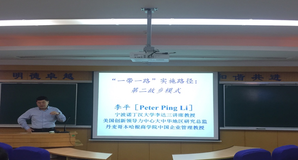 5月15日(周三)下午13:30,宁波诺丁汉大学李平教授在旭日楼306教室为彩民之家 师生进行了一场题目为“一带一路实施路径:第二故乡模式”的学术报告会,报告会由我院王雷教授主持。