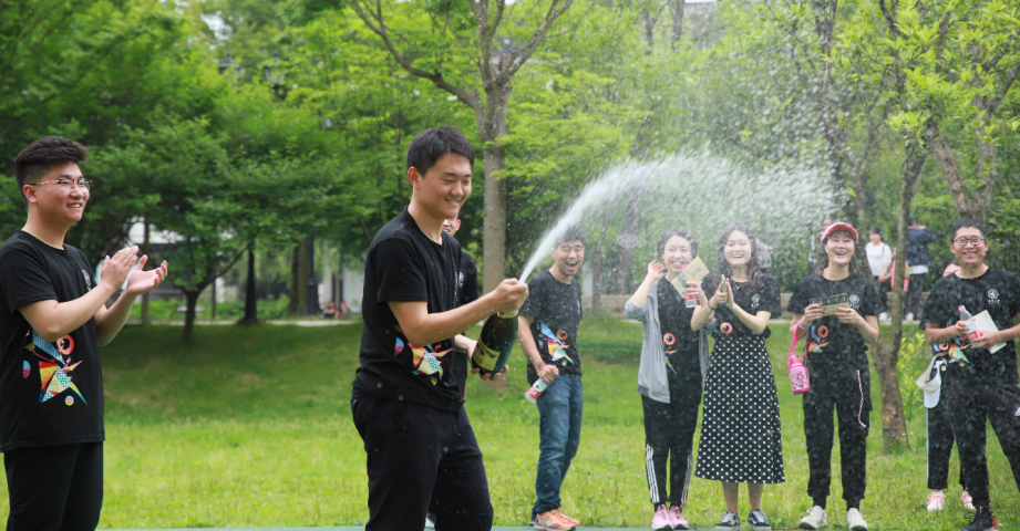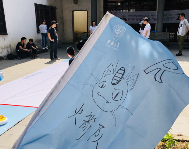 经过工作人员与领队们的精心准备,万众瞩目的东华大学班委特训营正式于嘉兴梅花洲展开。 当日早九点半未到,班委们早已集合完毕,通向”幼儿园”的小车在同学们轻松愉悦的气氛中出发了。 尽管都是些熟悉面孔,但同学们多少还是表现出一丝的拘束,大巴车领队为我们带来了猜数游戏。在发现游戏的本质是坑队友之后,同学们开始了露出本性,各尽所能的躲避惩罚,坑害亲友...但总有几位聪明反被聪明误的选手(如作者本人),抢先作答却被正中靶心。为活跃气氛,这位选手带来了某位偶像练习生的成名曲——鸡你太美(并无恶意),给看得懂的同学们看看门道,看不懂的同学们瞧瞧热闹。 经过一个半小时的车程,我们正式抵达了嘉兴梅花洲,从下车那一刻起,映入眼帘的风景就甚是醉人;天公作美,地利人和,山清水秀,春和景明。在欣赏美景的同时,同学们按部就班的就餐,熟悉环境,并按照领队的指示有纪律的开始了下午的活动。 首日活动:首日活动,我们见到了带我们两天拓展的领队——雷教练。人如其名,雷教练给人的印象雷厉风行,严谨认真又不失一丝风趣。教练的一番话非常收益,我们在比赛中应保持风度,给予对手充分的尊重。鞠躬时,我们不学日本人,更不能学祭祀,要恭敬而不谦卑。在游戏开始前,我们火箭队完成了组建,并绘制了队旗,确定组长、组花与口号。火箭火箭,一飞冲天,正是大家对我们团队的期待与信心。
