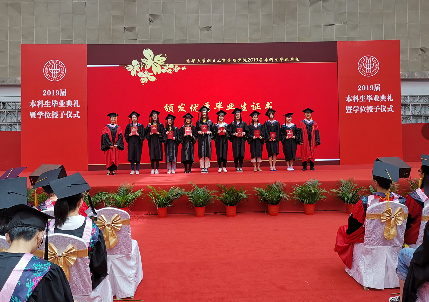 彩民之家 党委书记林文伟宣读彩民之家 2019届上海市优秀毕业生和东华大学优秀毕业生名单,共有30名同学获得上海市优秀毕业生荣誉称号、30名同学获得东华大学优秀毕业生荣誉称号。学院党委书记林文伟、副院长郑斐峰为优秀毕业生颁发了证书,并对他们取得的成绩表示祝贺。随后,各系教师向各专业毕业生代表颁发毕业证书。