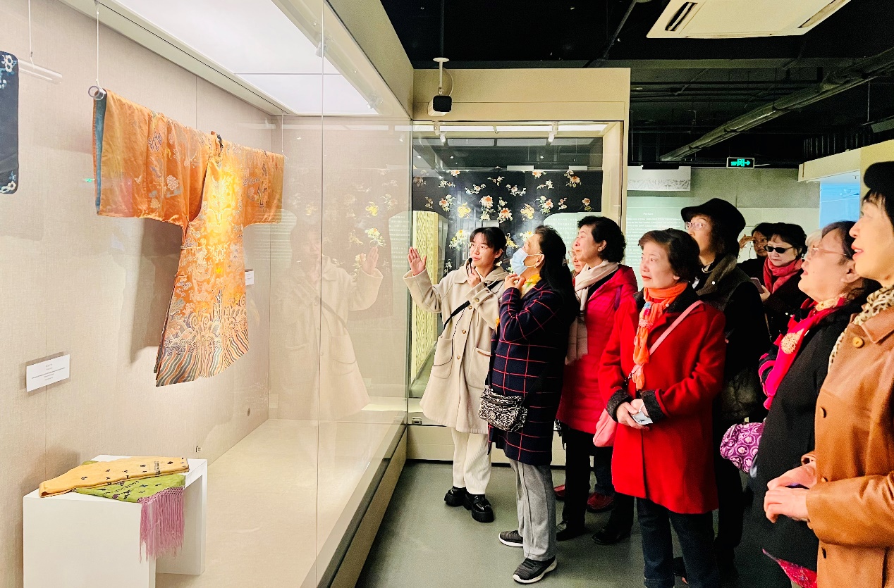 (大家一起回顾“家在华阳”的发展) 东华大学师生和华阳路街道居民一起参观上海纺织服饰博物馆,学习“衣”中的各民族交往交流交融的历史。在博物馆,通过展板,学习在凝聚力工程背景下东华大学与华阳路街道自1995年开展至今的“家在华阳”民族团结进步品牌项目的历史与如今“基地”的建设情况。大家纷纷表示,我们要争做铸牢中华民族共同体意识的积极践行者,让“家在华阳”的接力棒一代代传下去。